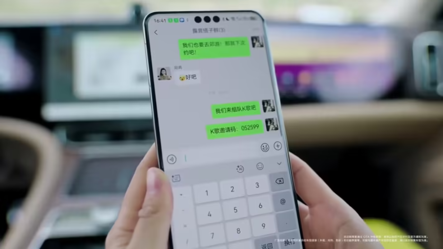 从问界汽车官方发布的宣传视频来看,用户启用多车跨地域组队 K 歌功能后会生成一串邀请码,接受邀请的用户在车机端的 App 上输入这串邀请码即可加入一起唱歌。