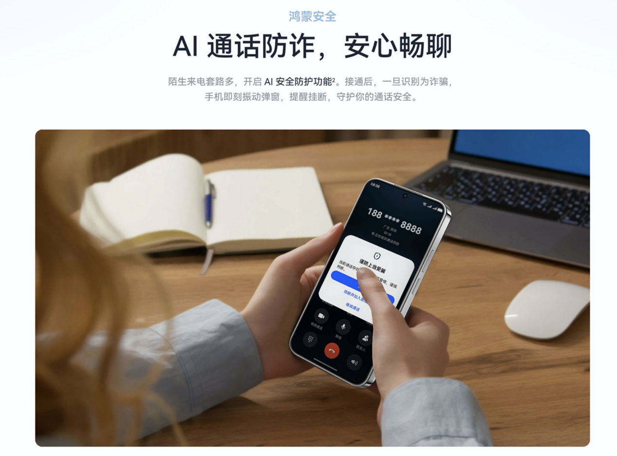 影像之外,nova 14 活力版在系统体验上同样有升级。其搭载鸿蒙操作系统 5.1,不仅延续鸿蒙系统的流畅交互与智慧体验优势,还进一步强化了安全防护。例如,AI 通话防诈功能的加入,能主动识别并预警高危通话场景,提前帮助用户规避电信诈骗风险。无论是冒充客服、虚假投资、贷款诈骗还是冒充公检法的常见陷阱,系统都能通过 AI 模型进行风险提示。配合全新的星盾安全架构,用户的个人数据、隐私都能获得系统级防护,为日常使用增添一层「智能安全屏障」。此外,包括 AI 修图、小艺智能体、趣味主题等功能,还为用户带来了更加有趣智能的用机体验。在通信层面,nova 14 活力版支持鸿蒙智慧通信,具备 AI 弱网秒回与弱信号增强技术,能够在地铁、电梯、地下车库等信号薄弱场景中依旧保持流畅通话和稳定网络连接。