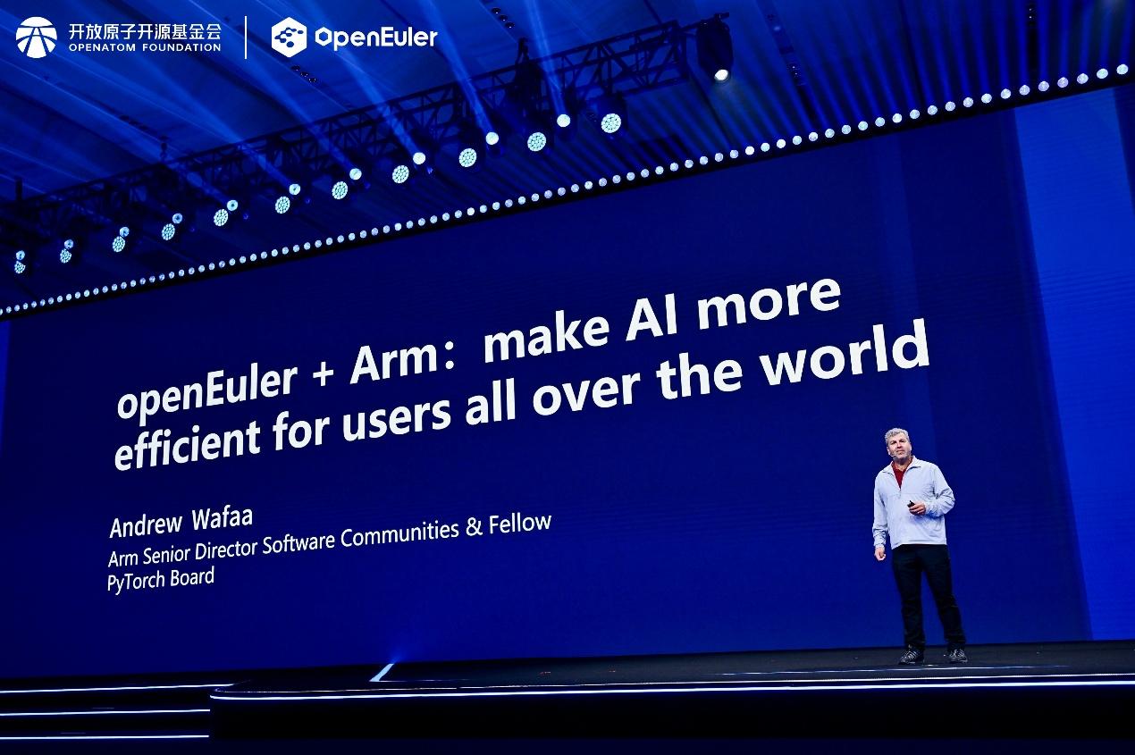 Arm Fellow、软件社区高级总监、PyTorch基金会董事的Andrew Wafaa表示,Arm公司在提升技术能力的同时,确保相关技术能够兼容开源欧拉社区,持续深耕AI的产业共建。