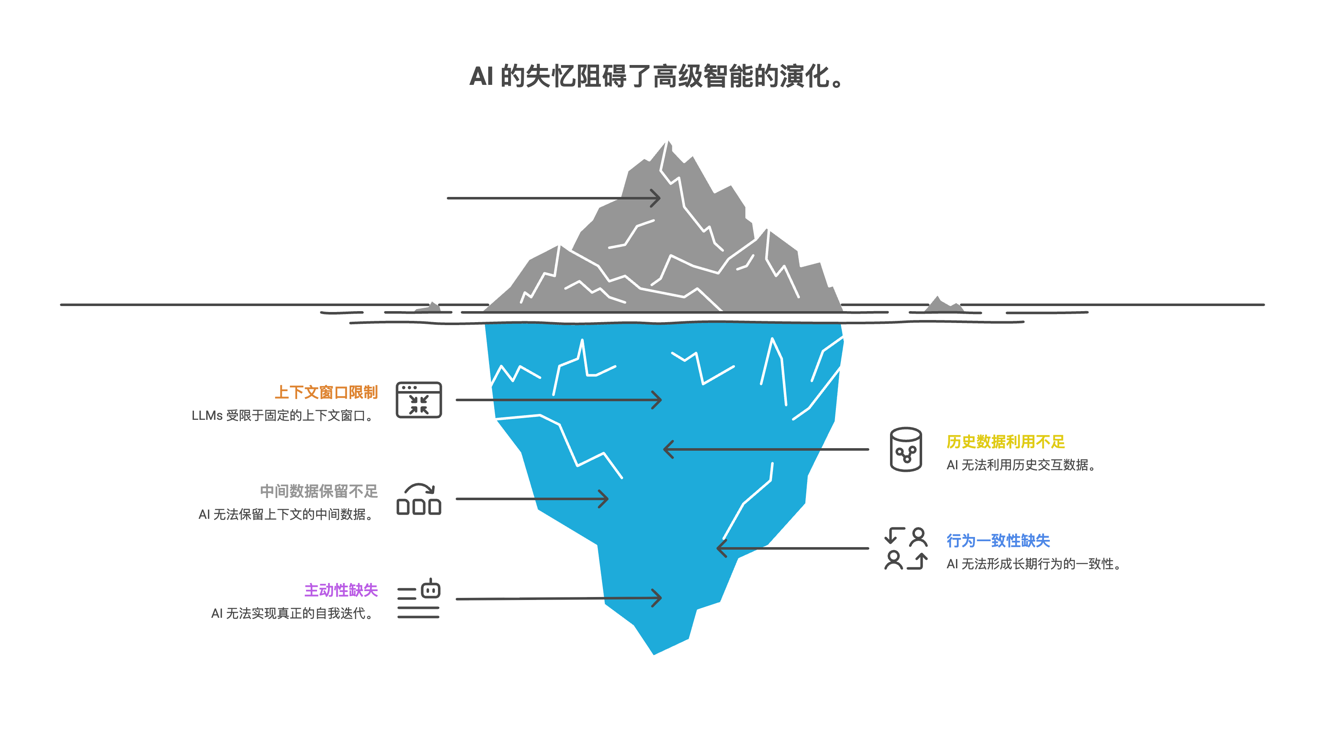 这不只是一个技术缺陷,更是 AI 走向高级智能的演化桎梏。一个没有记忆的主体,无法形成长期行为的一致性与主动性,更不可能实现真正的自我迭代。个性化、一致性、主动性——这一切演化的前提,都依赖于一个强大的记忆系统。