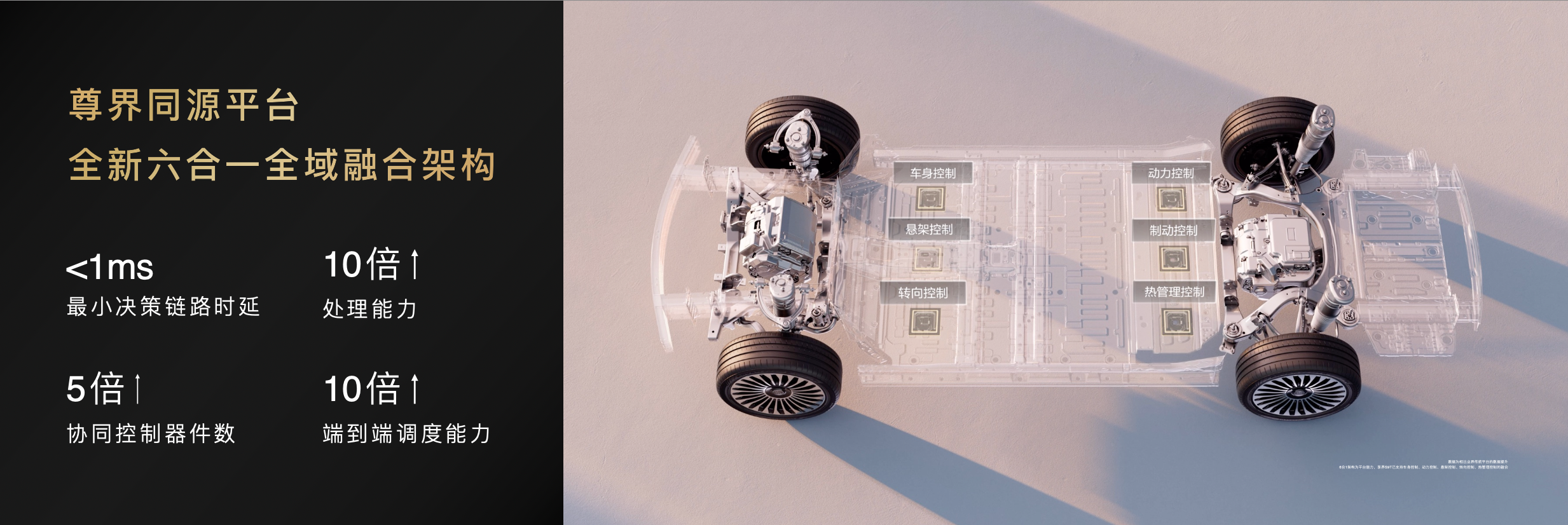 以智能驾驭性能,新款享界 S9 升级全新一代华为途灵平台,让豪华更从容。新车采用前独立双叉臂,后五连杆悬架设计,标配 5 档可调的智能空气悬架,全新连续可变阻尼减振器,操控与舒适兼得,机械质感媲美百万豪车;升级尊界同源的全新六合一全域融合架构,决策时间更短,调度能力更强,搭配华为乾崑智驾 ADS 4、时空智能悬架网络、HUAWEI XMOTION Control 智能车身协同控制及 HUAWEI DATS 动态自适应扭矩控制等多项技术的协同配合,如同赋予了新款享界 S9 底盘「明亮的眼睛」、「聪明的大脑」以及「强壮敏捷的四肢」。在出行中,车辆提前路况预瞄,路况空间模型分辨率提升 100 倍,并通过高效智能思考,精细化协同控制,紧急避障精准操控、颠簸路、坑洼路游刃有余。在中汽中心麋鹿测试中,更是取得了 84.1km/h 的优势成绩,为用户带来颠覆性的操控性能。