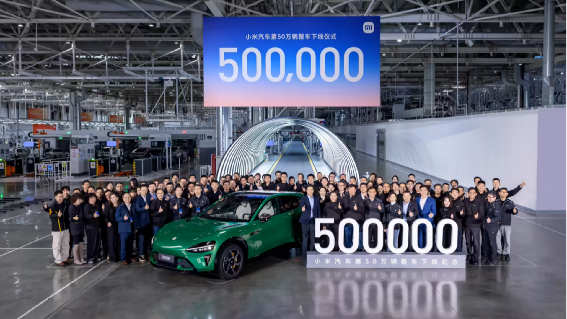 11 月 20 日消息,小米汽车官微发文宣布:「刚刚,小米汽车第 50 万辆整车正式下产线。这是一个新的起点,未来我们会持续努力,感谢所有车主的支持。」
