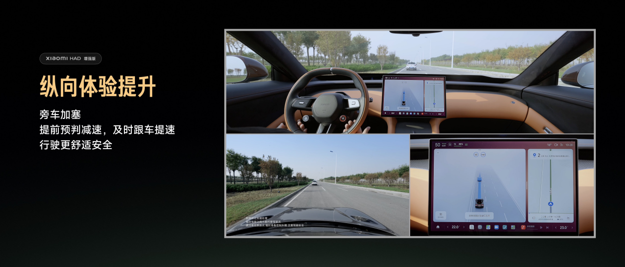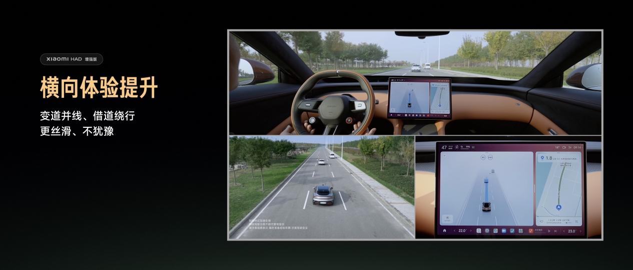 多场景的综合表现更成熟、更可靠。从高速公路的流畅变道,到城市道路的灵活穿行,再到上下地库、进出小区等细微场景,强化学习加持下的小米辅助驾驶系统在各个场景间的表现更加成熟稳健。这些能力的全面提升,让 Xiaomi HAD 增强版在面对复杂多变的真实路况时,展现出更加成熟、稳健的驾驶表现,为用户带来真正意义上的安心驾乘体验。