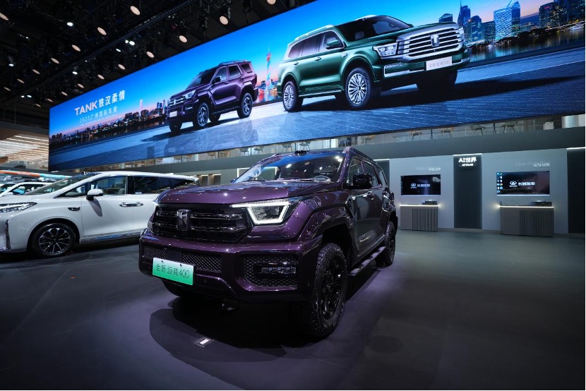 展台上全新坦克 400 的「敦煌紫」和全新坦克 500 的「敦煌绿」,不仅是两种新增的车漆颜色,更是一种明显的文化策略 。在当下的汽车消费市场,尤其是年轻消费群体中,颜色已不再是单纯的物理属性,而是一种社交货币。全新坦克 400 本身的设计语言具有强烈的机甲感,棱角分明的线条与深邃的紫色结合,试图在工业设计中融入某种神秘感与潮流属性。数据显示,该车型上市两周终端成交量近 5000 台,这一数字侧面印证了年轻用户对于个性化表达的买单意愿 。