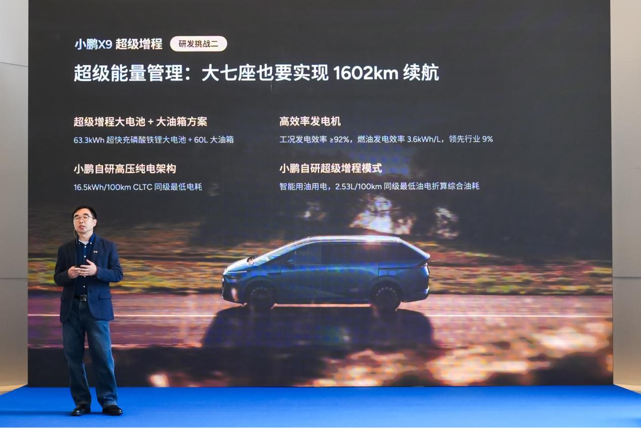 作为鲲鹏超级增程技术的颠覆之作,小鹏 X9 超级增程以「超快充大电池+大油箱」组合,重新定义「下一代增程」。同时,作为一款面向全球家庭用户的增程 AI 大七座,小鹏 X9 超级增程对其动力系统提出极高标准,分别为「纯电续航长、充电速度快、亏电动力足、综合能耗低、增程噪音低、空间集成高」,这要求在架构设计上实现一车双能且不侵占车内乘坐空间;续航上能够兼容 5C 超快充高压大电池+大油箱;动力上实现同级领先的大七座发电与保电能力;在传统增程最关键的静谧槽点上要求降噪 NVH≤0.5dB(A),真正做到完美融合纯电体验的优势与无感增程的从容,为全球用户打造「下一代增程」体验。