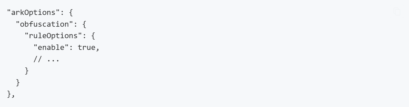 若按照上述编译流程开启代码混淆,在 DevEco Studio 5.0.3.600 之前的版本,默认仅混淆参数名和局部变量名。从 DevEco Studio 5.0.3.600 版本起,默认启用四项推荐的混淆选项:-enable-property-obfuscation、-enable-toplevel-obfuscation、-enable-filename-obfuscation 和 -enable-export-obfuscation。开发者可以根据需要进一步修改混淆配置。