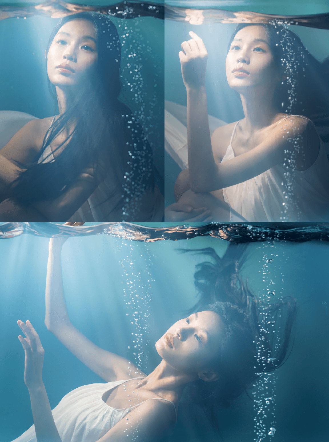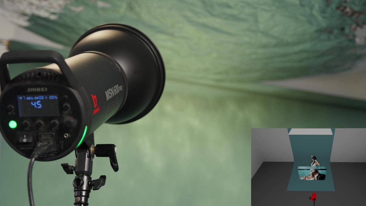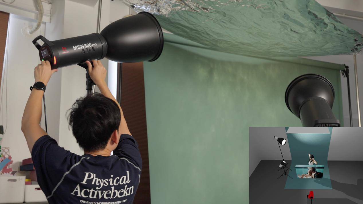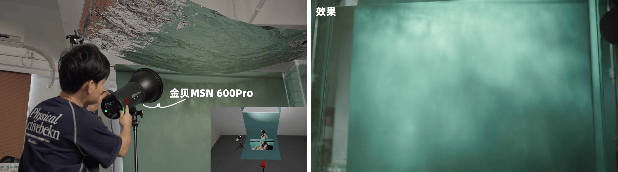 从背景的蓝调波光, 到人像的立体轮廓, 再到水面的耶稣光效, 金贝 MSN 600Pro、MSN 800Pro、HD 600MAX、HD 400MAX 的多灯组合, 打破了室内拍摄的光线限制, 让「深海人像」也能轻松实现。