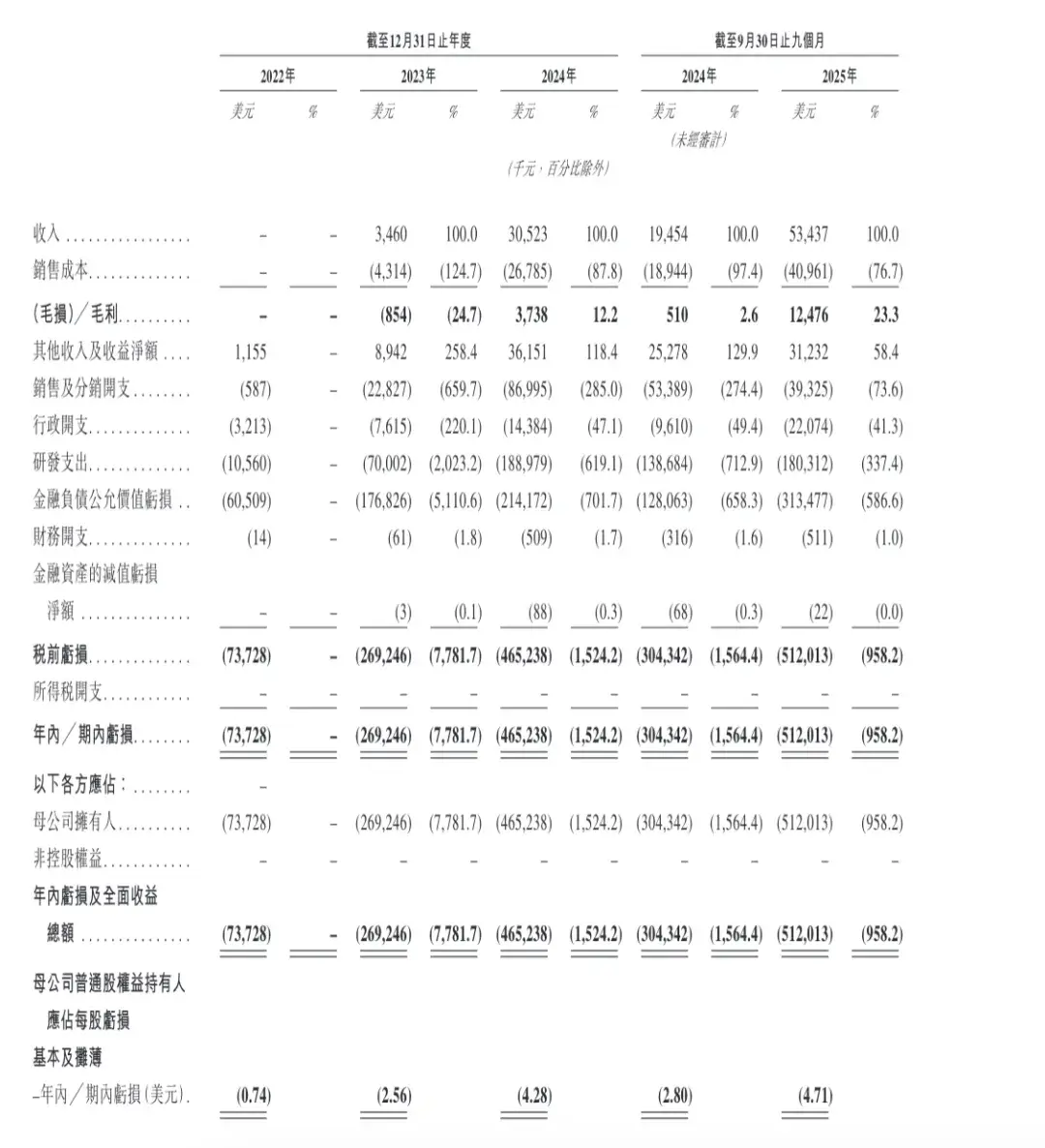 先看被低估的营收与利润。2022 年才成立,2023 年营收就已经达到 346 万美元,2024 年飙升至 3052 万美元,同比增速 782.2%;2025 年前九个月,营收同比增长 174.7%,达到 5344 万美元。