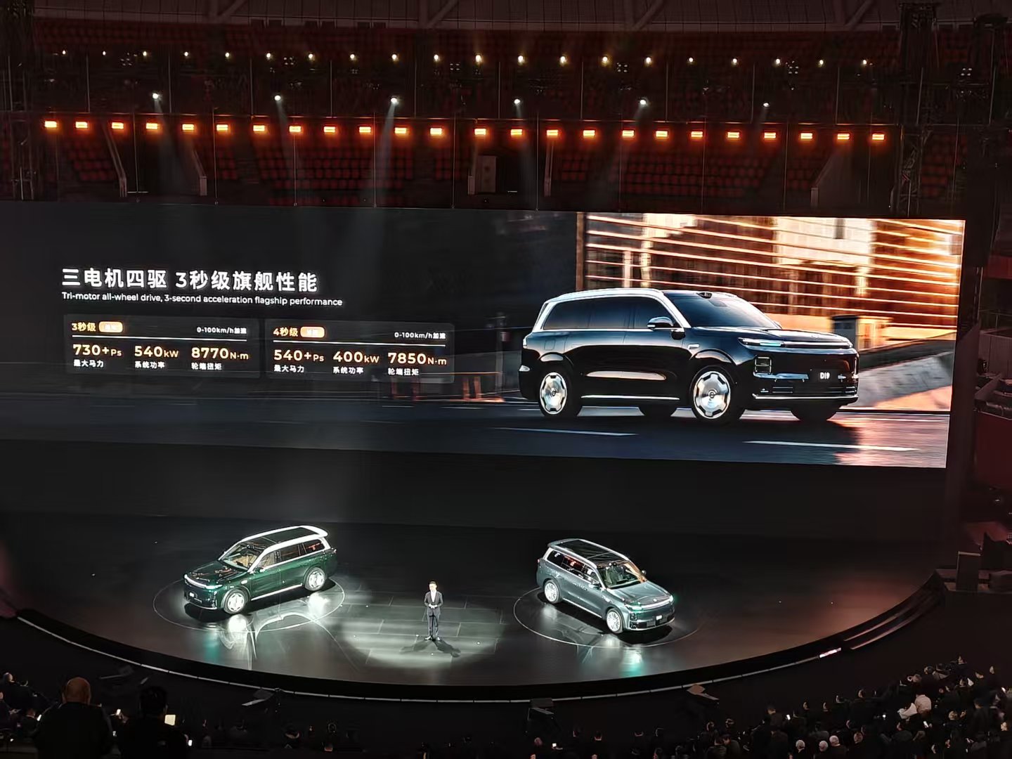 情绪价值给到后,曹力才介绍 D19 硬核的部分。例如双能电机增程四驱,纯电版的三电机四驱,零百加速进入 3 秒俱乐部,也就是说这不仅是一台全家之车,更是一台动力野兽。