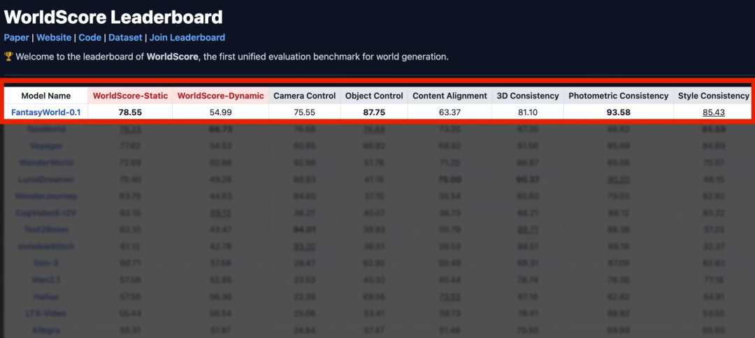 在斯坦福大学教授李飞飞团队发布的 WorldScore 官网显示,高德世界模型目前综合得分位列第一。(来源:上海证券报)