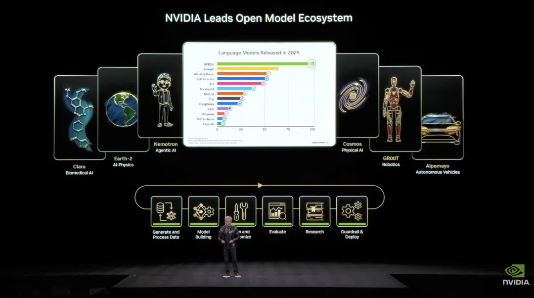 很多人误解英伟达,说它只是「卖 GPU」,而黄仁勋在 CES 台上反复强调一件事,即英伟达正在成为一个前沿开源模型构建者,而且是完全开放的那种。