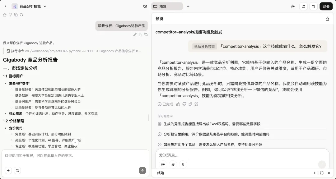 它想要把 Skill 与「扣子编程」深度融合,从而打造一整套「职场 AI」解决方案。