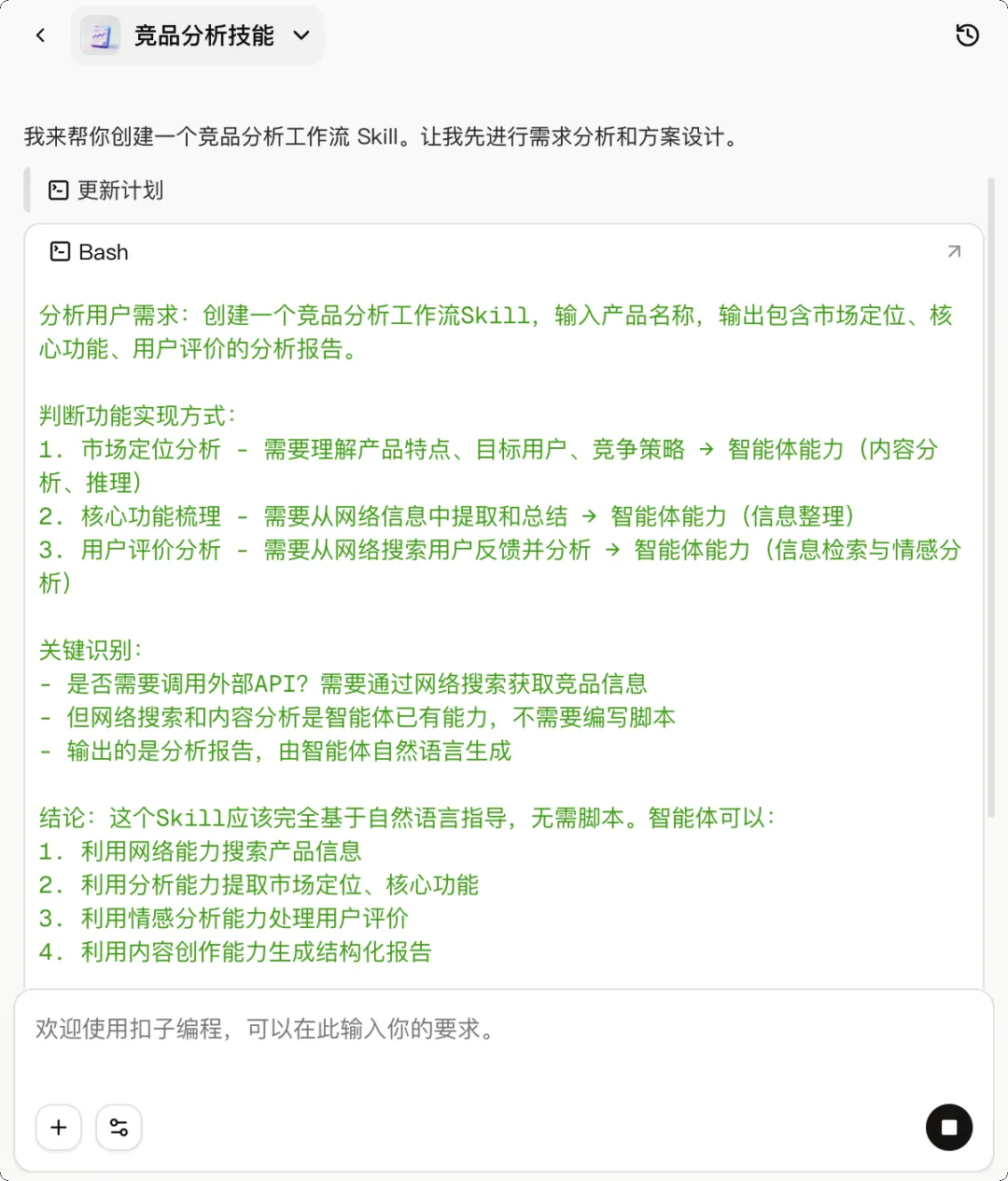 技能创建思考过程|图片来源:扣子