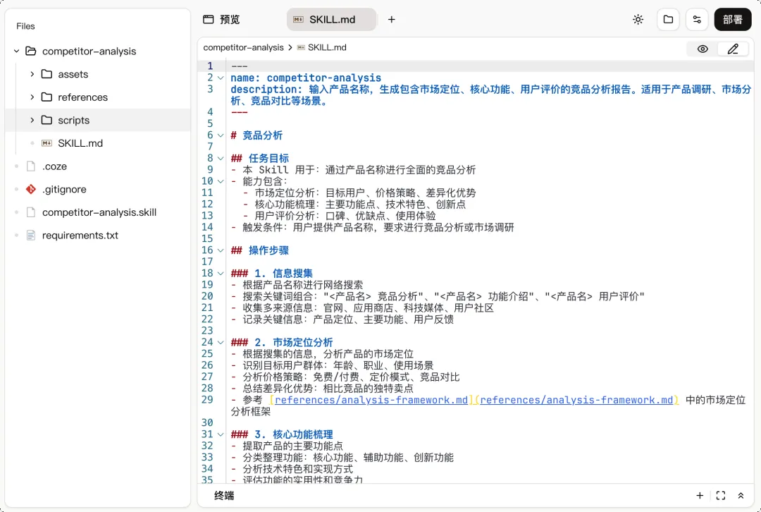 几分钟后,一个完整的「Coze Skill」就生成了。