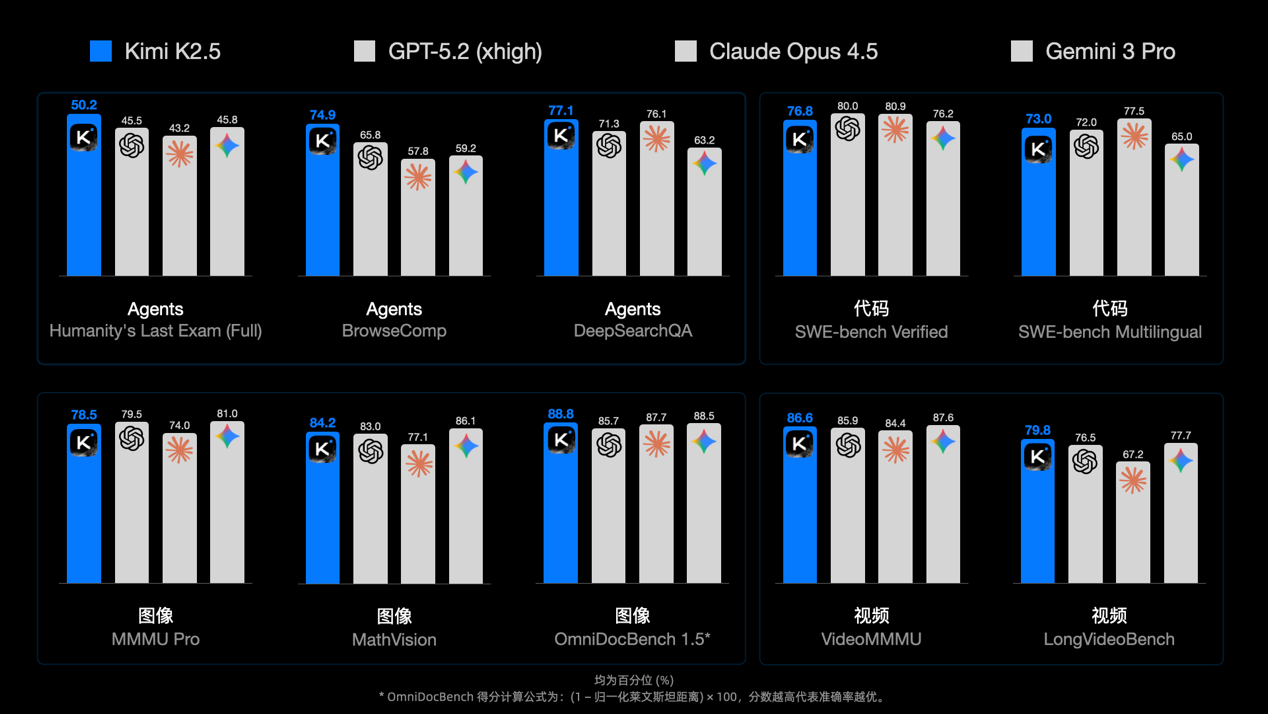 Kimi发布并开源 K2.5 模型,带来全新视觉理解、代码和 Agent 集群能力
