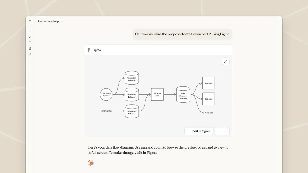 现在用户可以直接在对话中操作 Figma 里的项目|图片来源:Anthropic