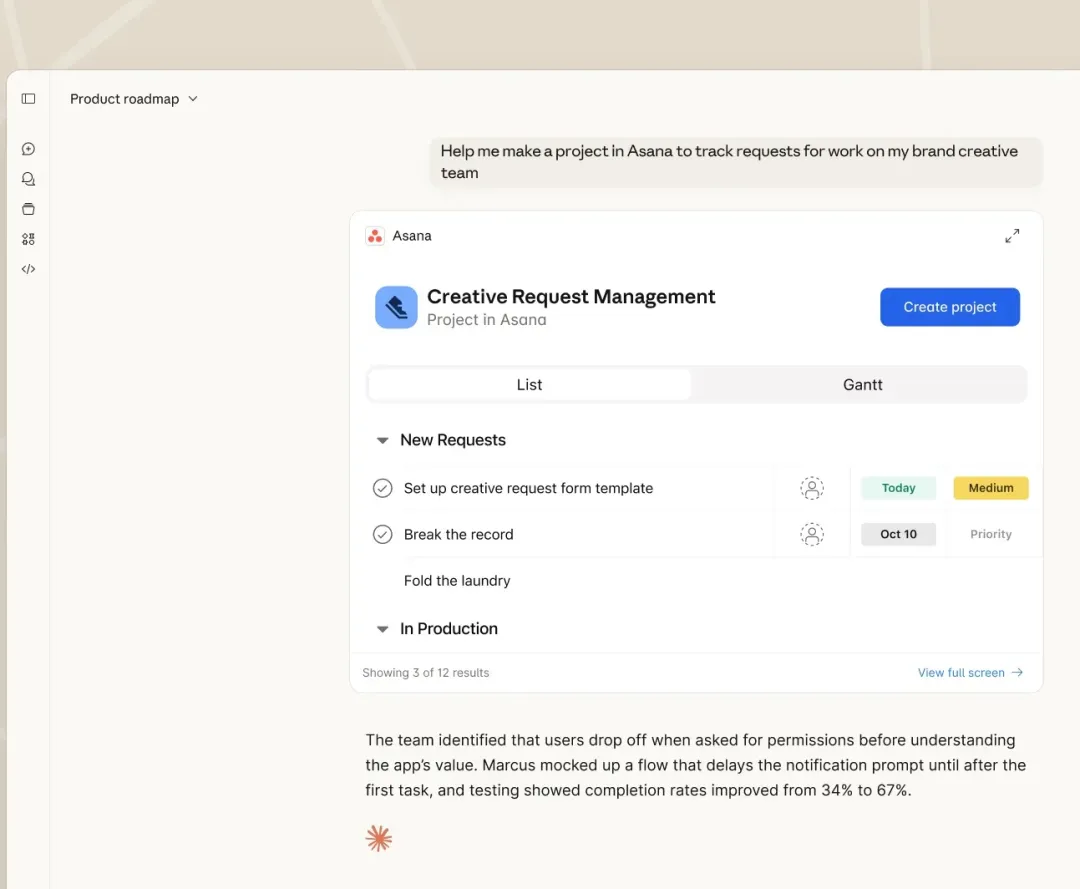 在 Asana 里用自然语言创建协作项目|图片来源:Anthropic