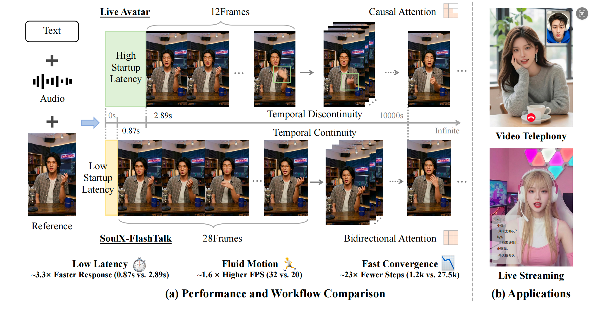 •「零延迟」即时反馈: 首次让 14B 级大模型数字人具备了即时反应能力, 彻底消除了传统大模型生成的「滞后感」。