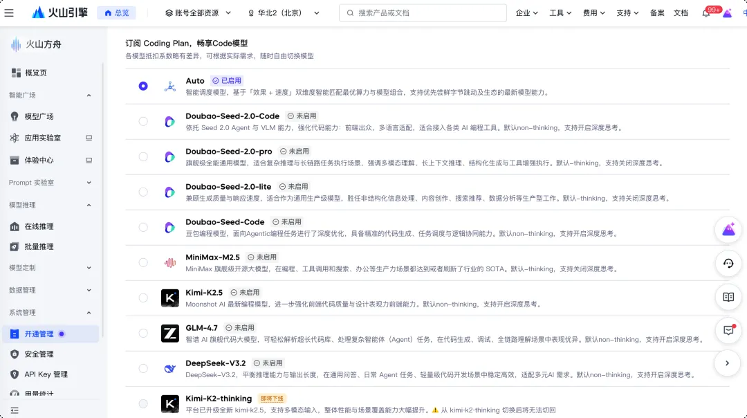 ArkClaw 背靠火山引擎的大模型体系,可以使用非常多的模型。