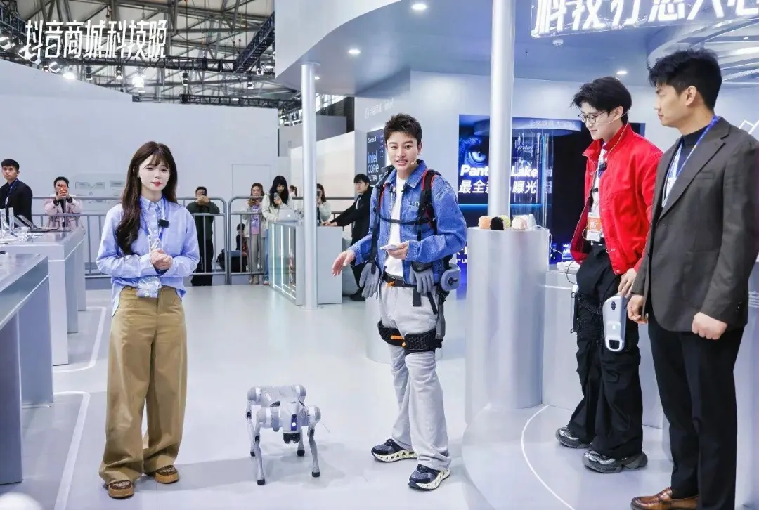 抖音则举办了抖音商城科技晚展区,展示了 nubia M153 豆包手机助手技术预览版、石头 G-Rover「会爬楼的扫地机」等科技产品。抖音还邀请了一众明星来逛展体验产品。