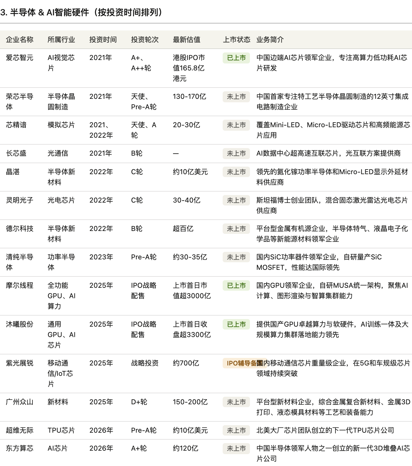 摩尔线程、沐曦股份、紫光展锐、爱芯智元……从 GPU 算力到 AI 视觉芯片,从功率半导体到移动通信芯片,美团的投资触角遍布在 AI 基础设施的各个方向,形成了一张相当完整的算力版图。