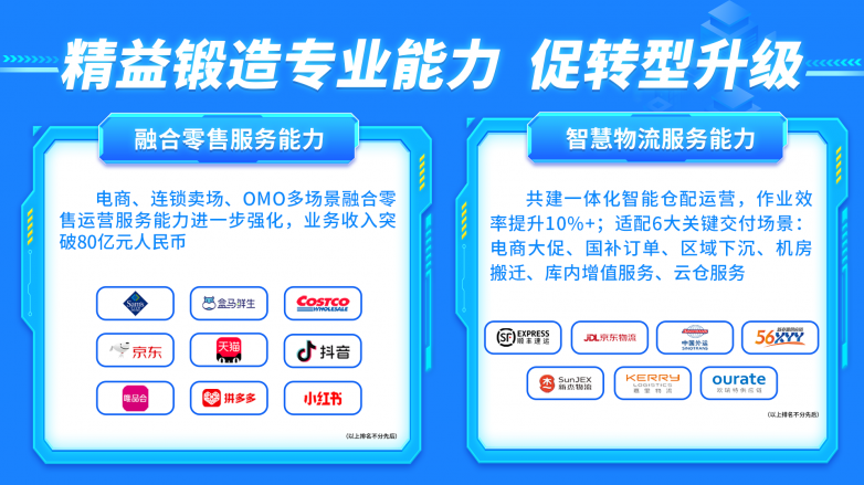智慧物流方面,公司共建一体化智能仓配运营,适配电商大促、国补订单、区域下沉、机房搬迁、库内增值服务、云仓服务六大关键交付场景,作业效率提升 10% 以上。