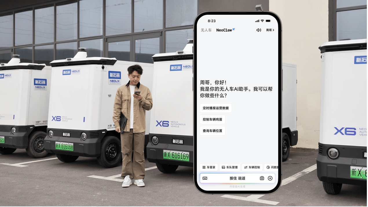 新石器无人车联合创始人、CPO 颉晶华表示:「NeoClaw 的发布,是我们在无人配送运营能力上的一次重要升级。以智能化手段重构车队管理与调度体系,在提升效率的同时显著降低运营与培训成本,大幅降低无人车使用门槛。我们希望通过此次迭代,简化无人车队运营链路,推动行业实现更高质量、更可持续的规模化落地,为无人配送产业的高效稳定发展提供坚实支撑。」