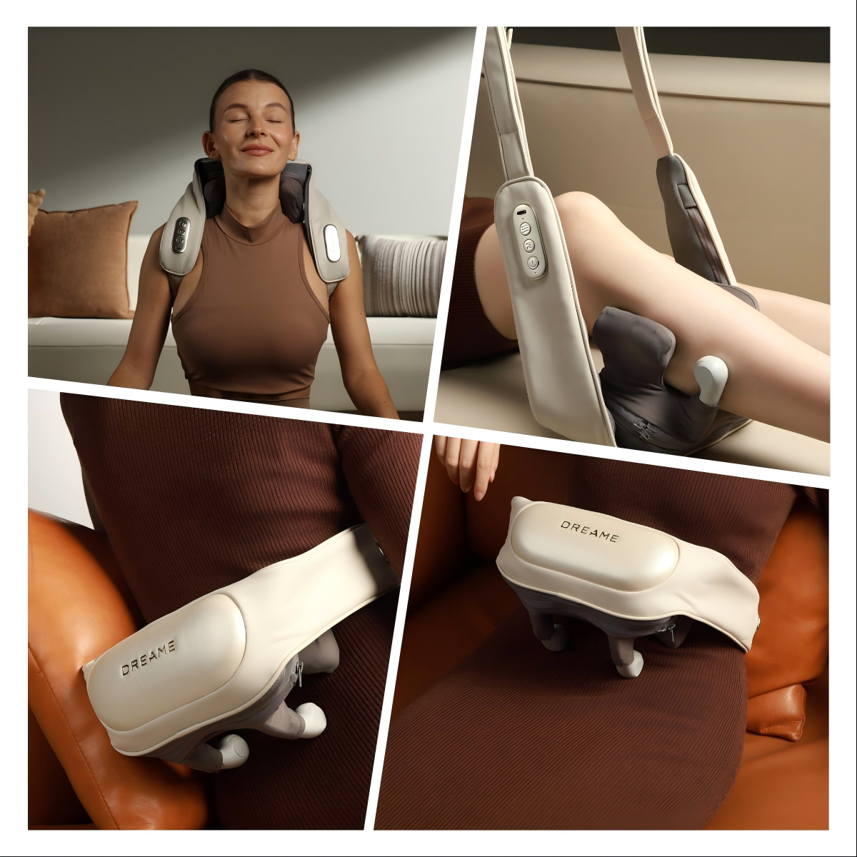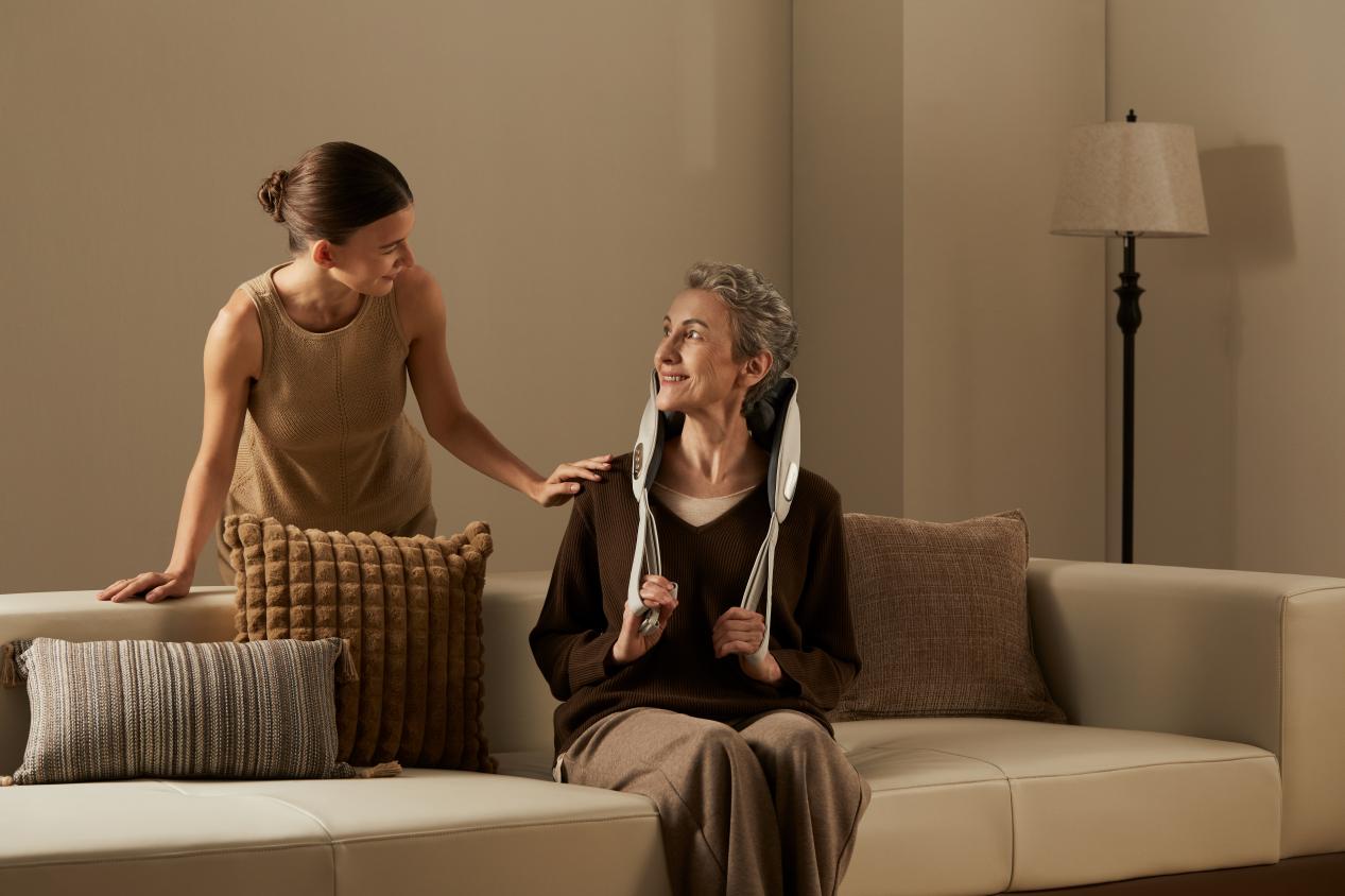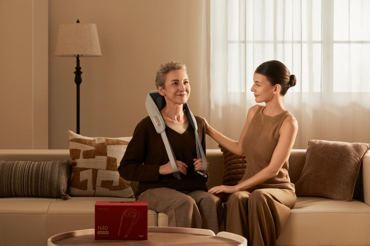 产品搭载 6D 深揉技术,可实现多维度揉捏与深层肌肉渗透,直击肩颈酸痛根源,配合可更换式按摩头,可实现按摩力度的自由调节,既能满足职场久坐人群重度劳损的深层放松需求,也能适配中老年人群的轻柔养护需求,大幅拓宽了产品的受众覆盖边界;超 2000mm²红光 +近红外+发热膜三重热敷体系,突破了传统产品单一热敷的局限,实现光疗深层养护与热敷舒缓的双重效果,针对肩颈僵硬、局部循环不畅等问题实现高效改善,打造了中高端产品的核心溢价能力,为合作伙伴带来更高的利润空间。
