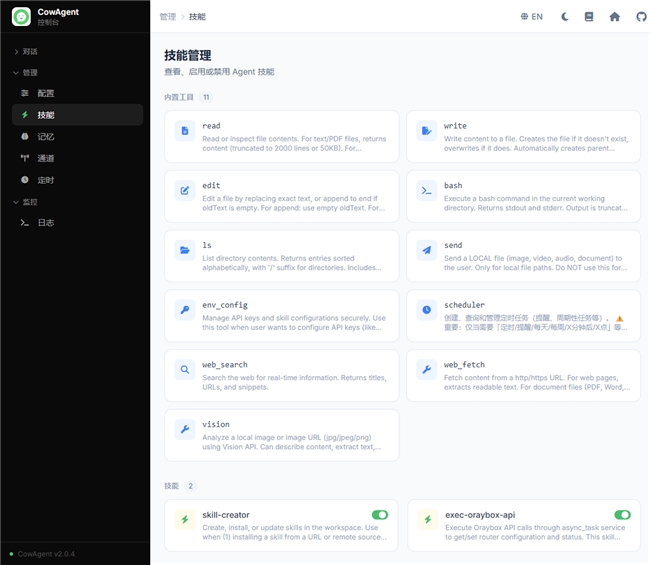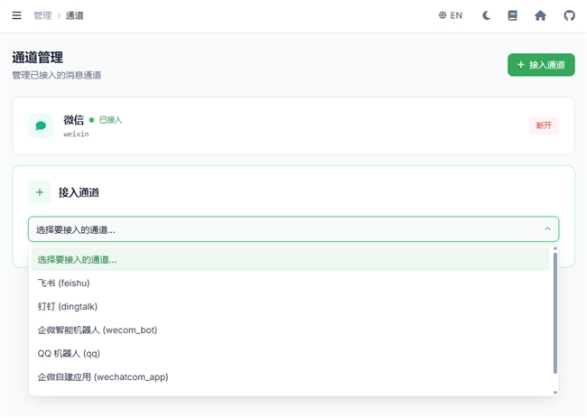 在交互方式上,除了支持接入飞书、钉钉、微信等聊天工具,也可以通过蒲公英异地组网能力,实现控制台的安全远程访问。
