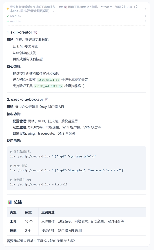 不止如此,OrayClaw 还可获取路由器状态,并调整相关配置信息。