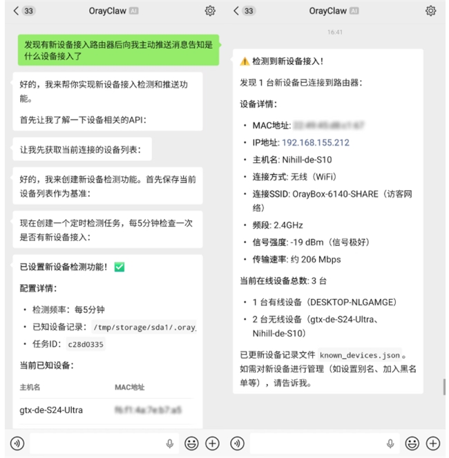 而在 OrayClaw 与路由器打通之后,很多风险可以更早被发现,也能更快被处理。