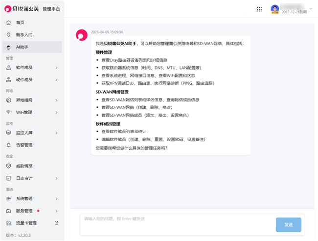 这类 AI 能力不仅在蒲公英 X1 Pro,云端异地组网管理平台同样也有蒲公英 AI 助手。