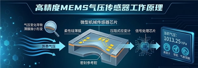 计算气压变化的这一黑科技的核心,藏在手表里比指甲盖还小巧的 MEMS 高精度气压传感器中。这个精细的微电机系统,能敏锐捕捉到上下楼时那微乎其微的大气压强差。