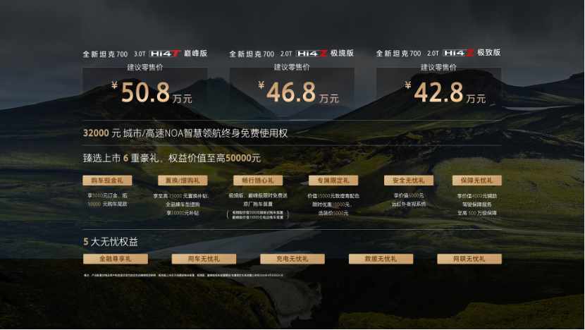 4月20日,全新坦克700在保定正式上市,售价42.8万元起。
