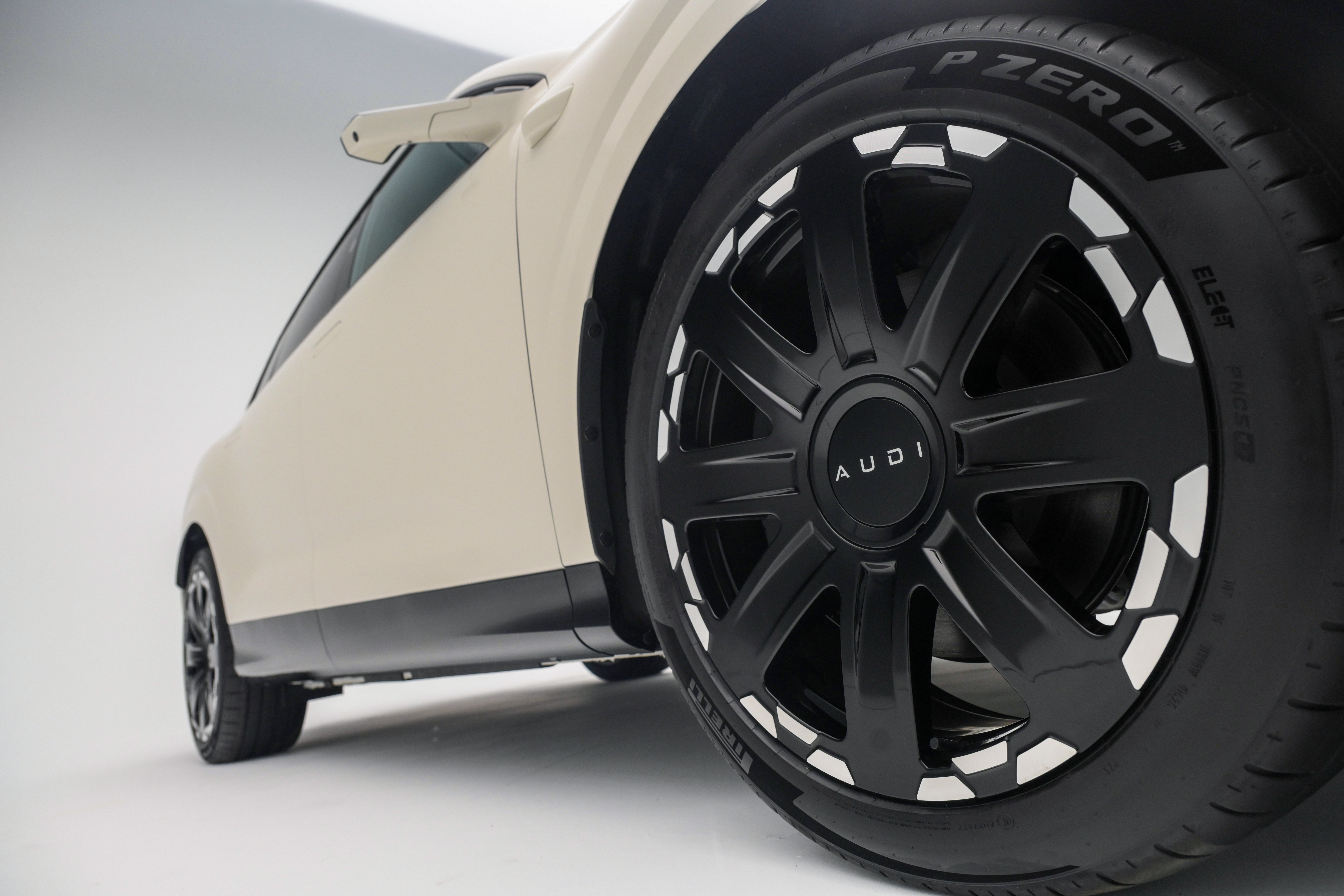 前脸与车尾的黑色环绕式闭合设计,是 AUDI 数字原生设计语言最直观的体现。远光灯、近光灯、传感器、进气格栅,所有功能元素被整合进一个连贯的视觉整体,没有多余的分割线,没有刻意的装饰堆砌。这种处理方式在视觉上极为干净,却在工程实现层面有着相当高的难度——每一个功能的隐藏与整合,都需要设计与工程的深度协同。