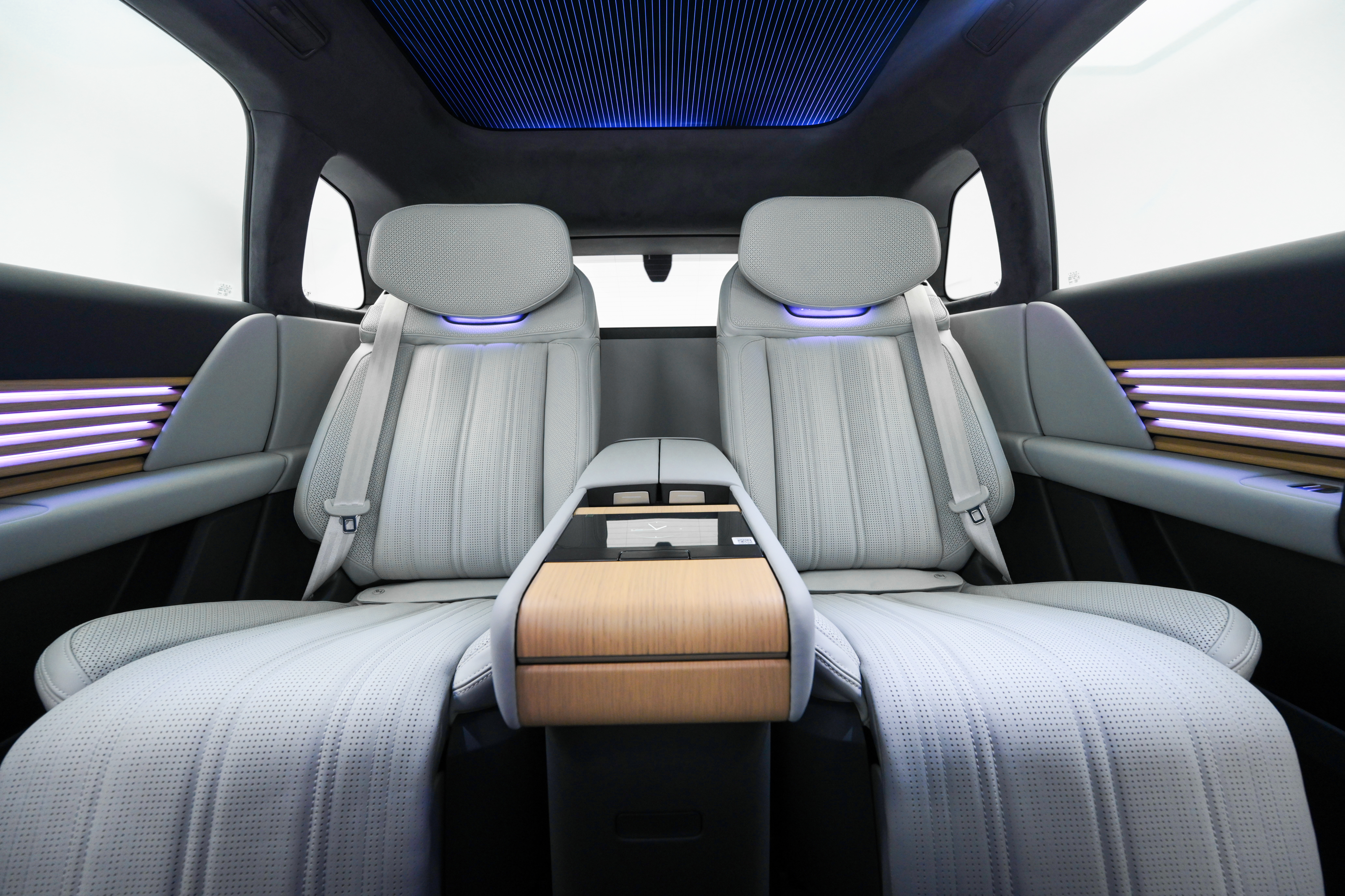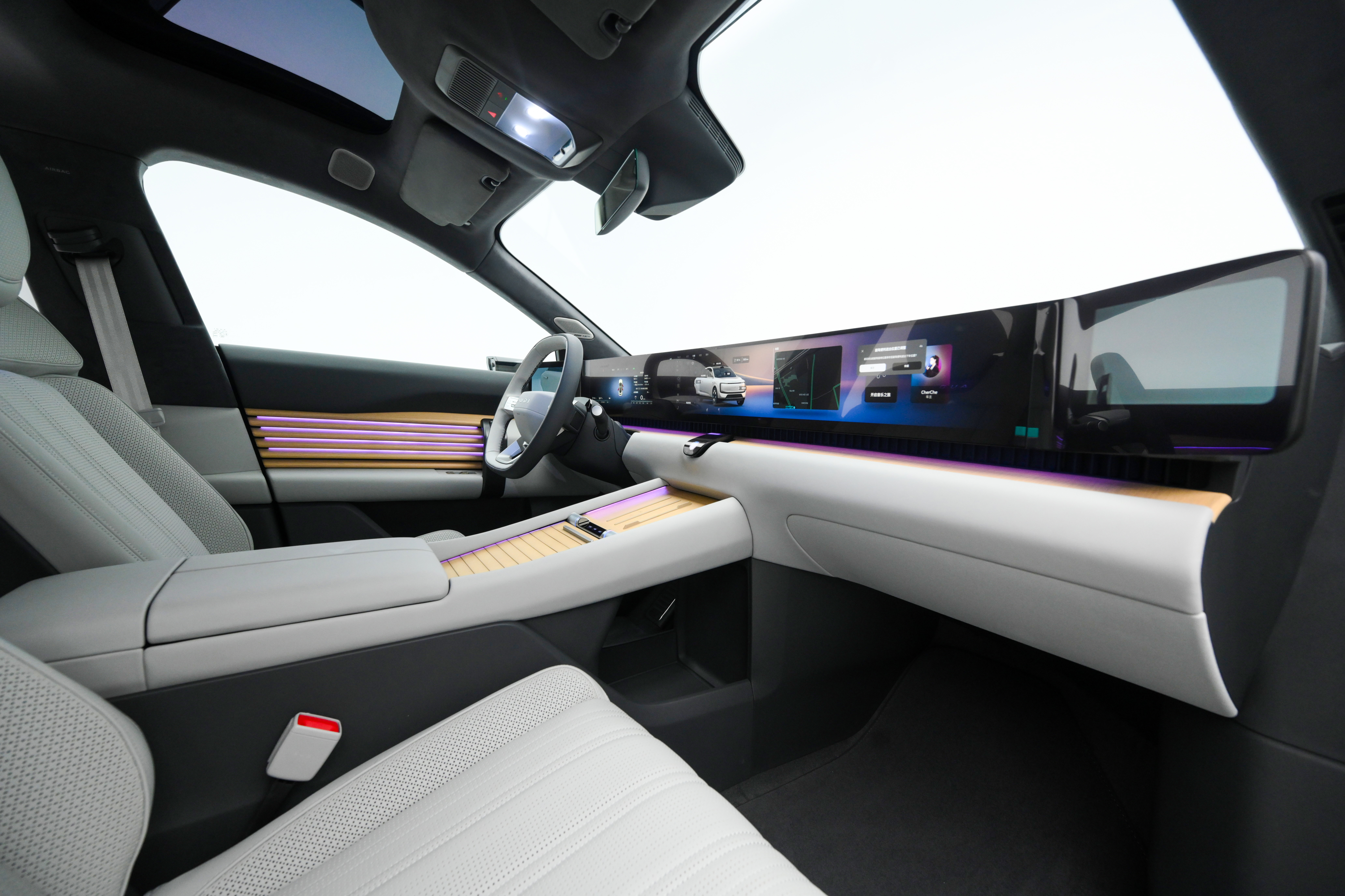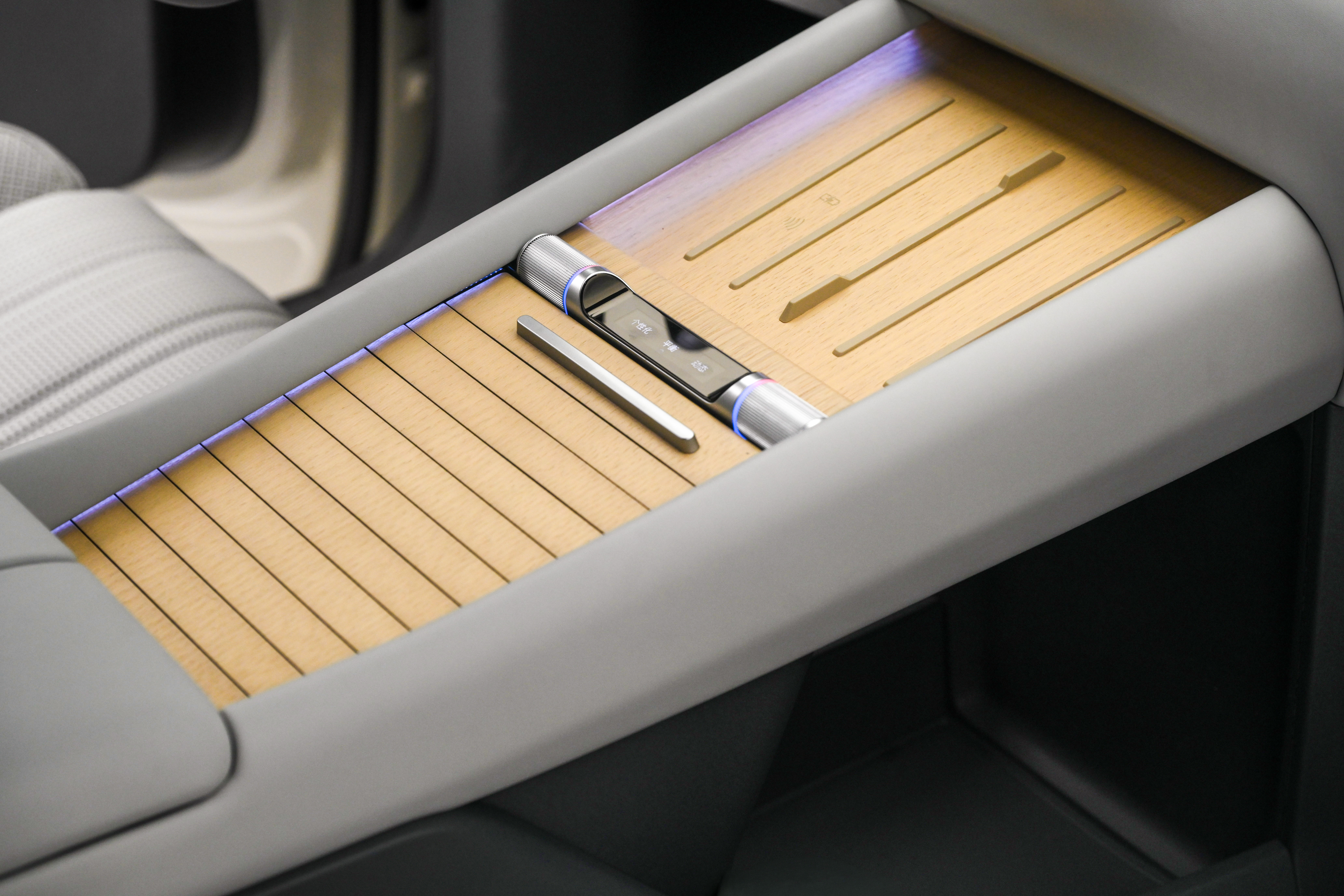 进入车内,第一感受是宁静。不是那种隔绝外界的压抑感,而是一种经过精心调配的、有质感的静谧。开放漆面栗木与橡木的纹理、Fine Nappa 真皮的触感、Articite®麂皮车顶的柔和质地——这些材质的组合,在视觉和触觉上共同营造出一种"高级客厅"的氛围感。值得一提的是,车顶与绒面装饰均通过 OEKO-TEX®认证,符合婴童级亲肤标准——这个细节,精准击中了中国家庭用户对"健康豪华"的隐性需求。