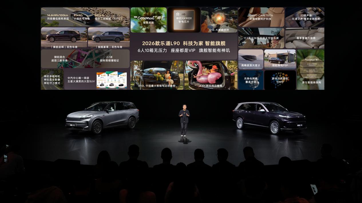 作为大三排 SUV 革新之作,乐道L90 上市以来累计交付超 5 万台,稳居 30 万级大型 SUV 销冠。科技为家,智能旗舰,2026 款乐道L90 再次进化,带来八大板块、超过 70 项软硬件升级。新车率先搭载蔚来自研全球首颗 5nm 车规级智驾芯片「神玑 NX9031」、中国首个面向自动驾驶的世界模型「蔚来世界模型」,和行业唯一面向 AI 的整车全域操作系统「SkyOS·天枢」,成为 30 万级别唯一集齐顶尖智能科技三大件的智能旗舰。同时,新车还搭载全新 Coconut 3.0 与 Coconut+ 3.0 智能系统,从激光雷达硬件到全场景智驾,从神玑影像到小乐智慧场景,真正实现“6 人 10 箱无压力、座座都是 VIP、旗舰智能有神玑”,全面刷新大三排 SUV 的家庭出行新标杆。