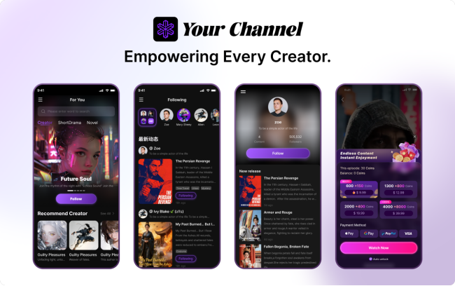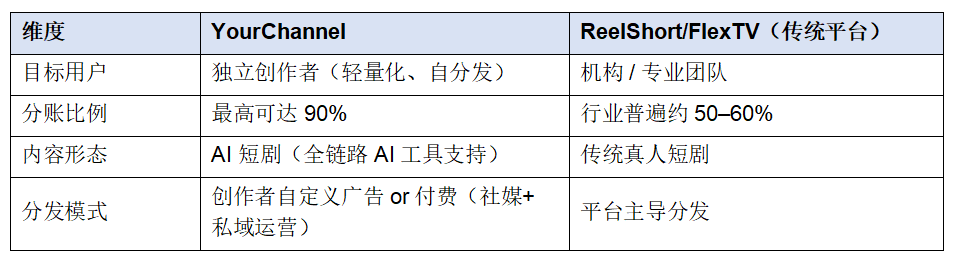 根据公开资料显示及公司相关人员称,YourChannel 将自身定义为面向新一代创作者的一人内容变现平台,核心模式是「付费观看 + 超高比例分成 + 创作者自主分发」。平台方面称,创作者最高可获得 90% 的分账比例,并可通过社交媒体、社群和私域渠道进行自主分发,使内容收益更直接、更快速地回到创作者本人。